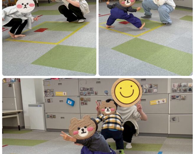 支援員のマネをして、